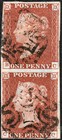 Great Britain 1841 QV 1d. Red PAIR ,,NE-NF,, MNG VFU ref.GB-87