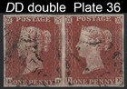 GB 1841 1d red plate 36 DD-DE pair fu, DD double letter variety, good margins,
